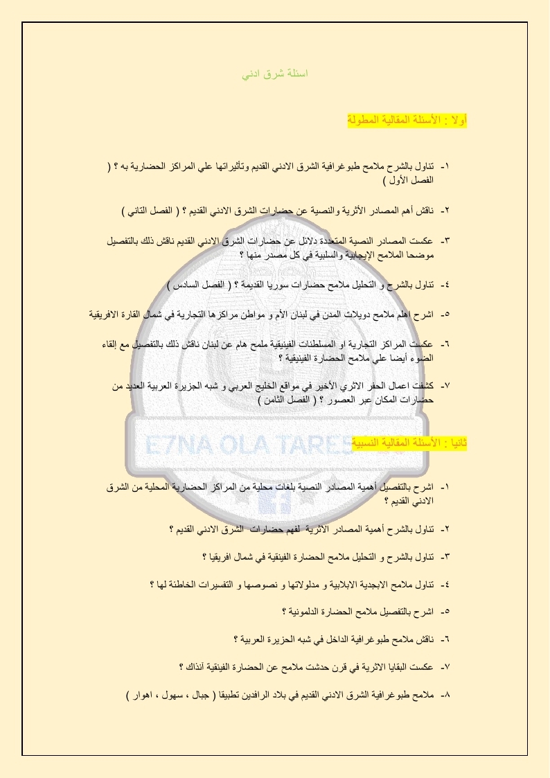 اسئلة تاريخ الشرق الادنى القديم
