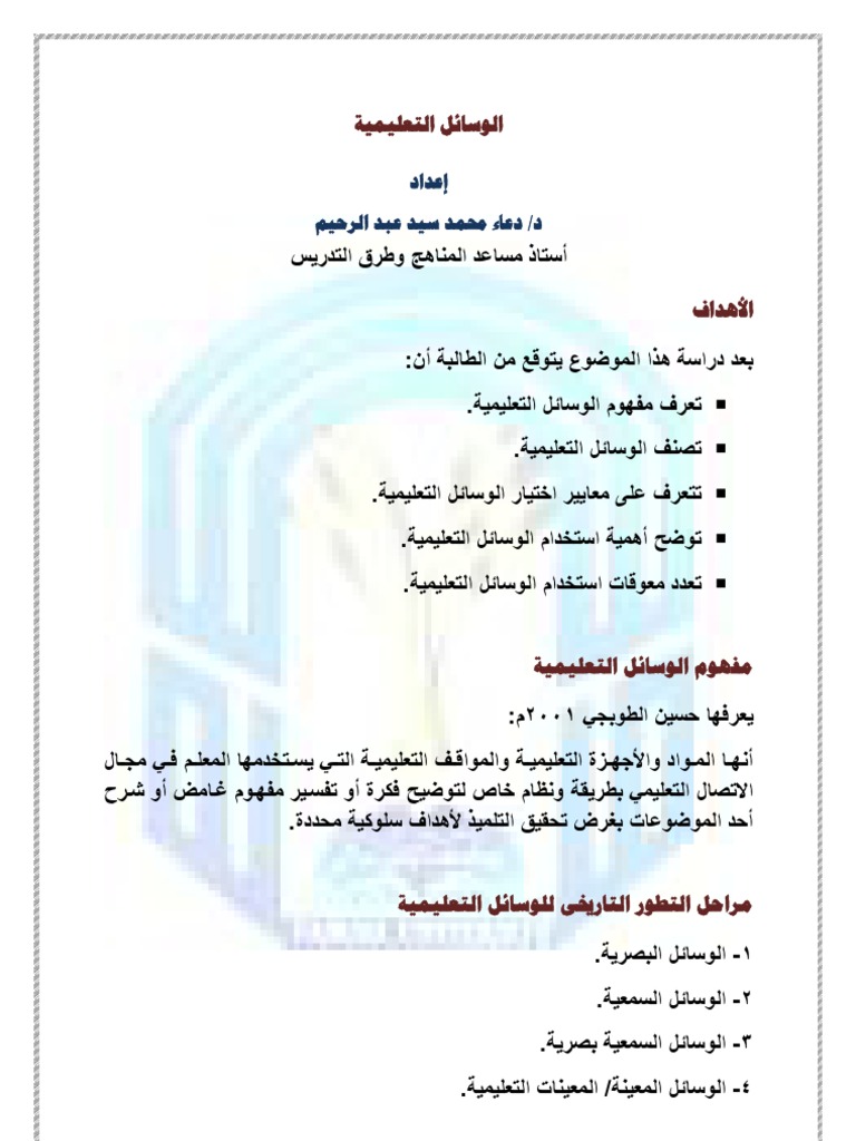الوسائل التعليمية أهميتها أنواعها معايير اختيارها مراحلها