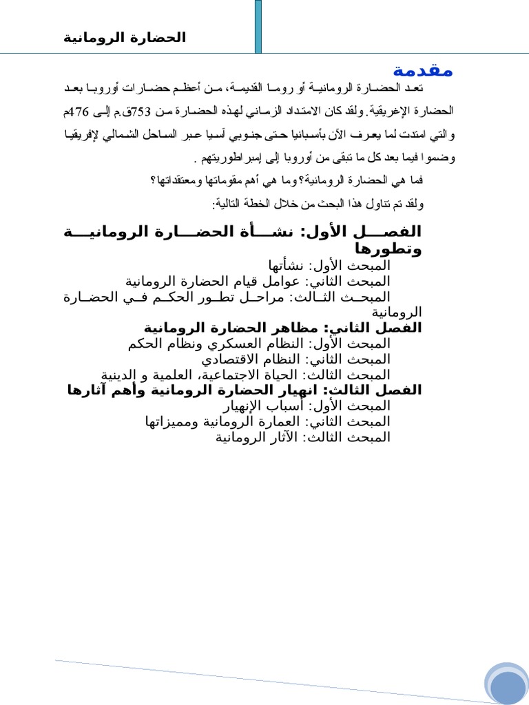 الحضارة الرومانية مميزاتها وأهم معالمها العمرانية بحوث