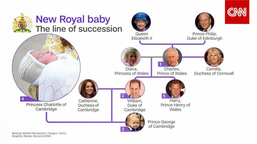 صور شجرة العائلة الملكية و وراثة العرش في بريطانيا بعد ولادة تشارلوت اليزابيث ديانا كتب عربية