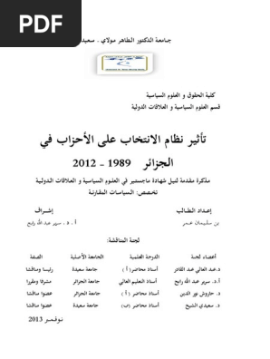 تأثير نظام الانتخاب في الجزائر على الأحزاب 19892012 م ع س 71 Pdf