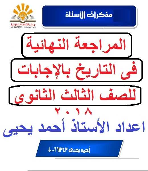 أفضل مراجعة في ليلة امتحان التاريخ بالإجابات للصف الثالث الثانوي 2018 مستر أحمد يحيى