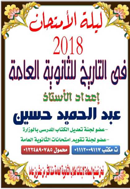 أقوى مراجعة في ليلة امتحان التاريخ للصف الثالث الثانوي 2018 مستر عبد الحميد حسين