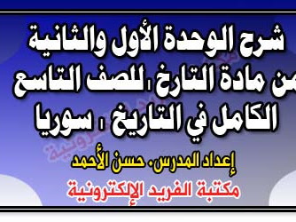 شرح الوحدة الأولى الثانية ـ التاريخ للصف التاسع ـ سويا 2020 الكامل في التاريخ مكتبة الفريد الإلكترونية