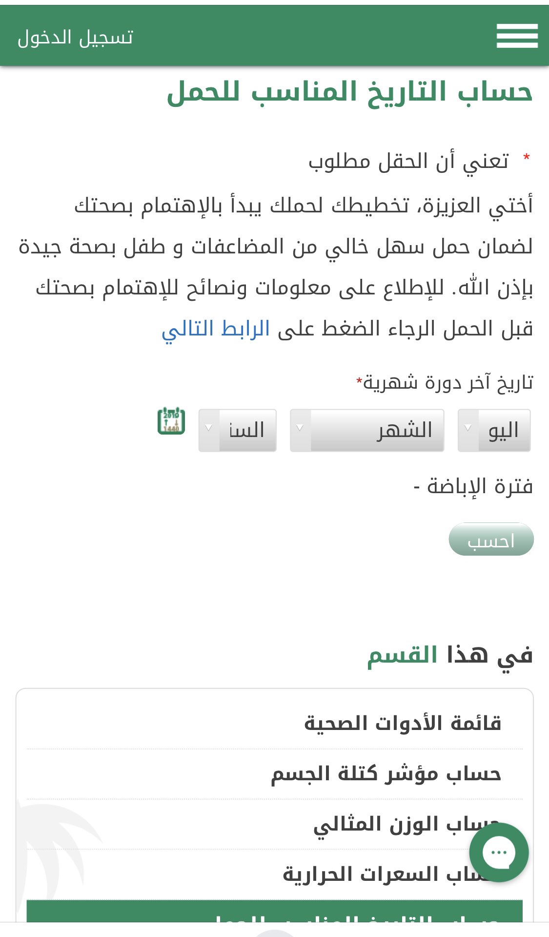 حساب التاريخ المناسب للحمل حساب عمر الحمل بالهجري وزارة الصحة