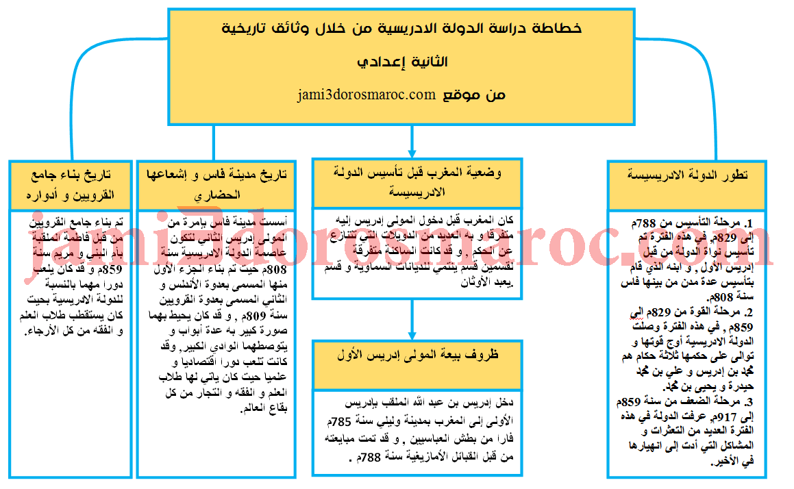 خطاطة دراسة الدولة الادريسية من خلال وثائق تاريخية الثانية اعدادي