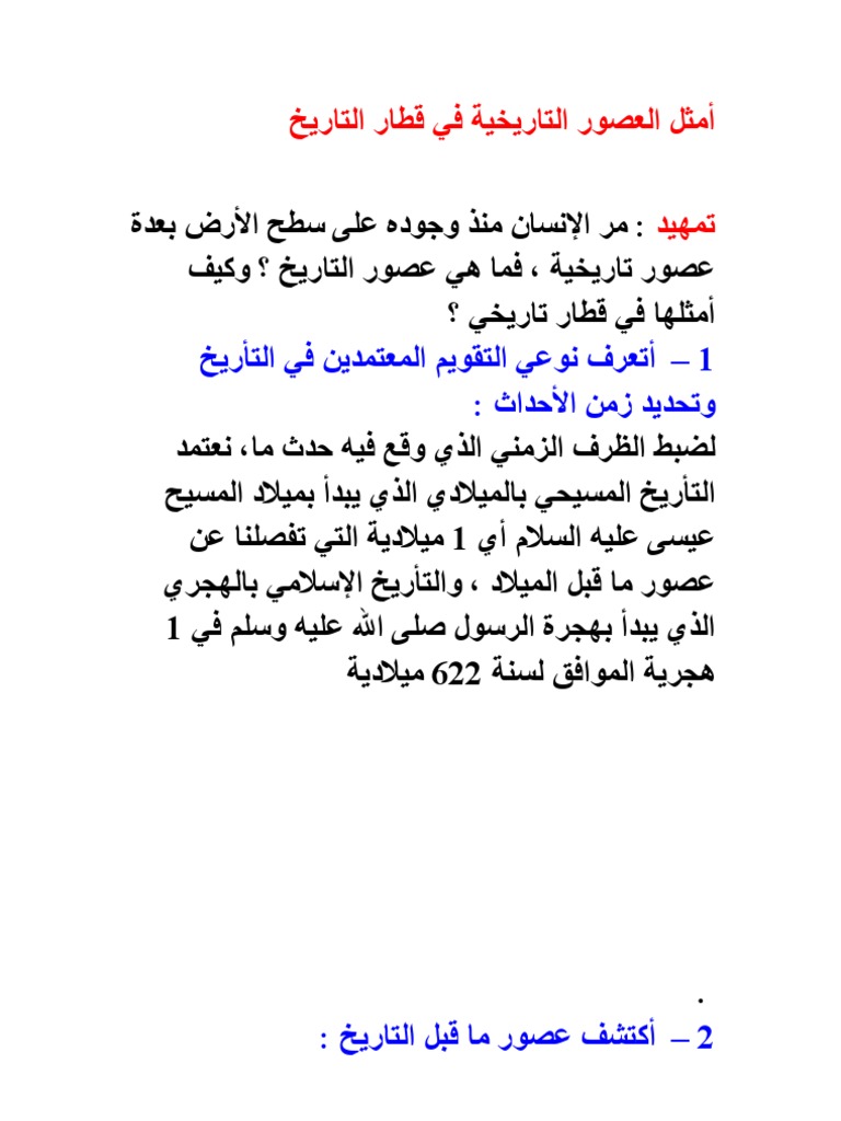 معلومات عن العصور التاريخية سطور