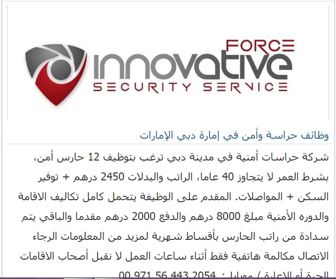 مطلوب افراد امن للسفر للامارات براتب 4000 دهم Wazayf4u