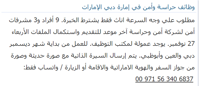 خبر هام مطلوب افراد امن ومشرفين للعمل فى الامارات Wazayf4u