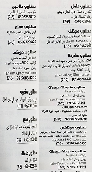 وظائف خالية فى الامارات بتاريخ اليوم فى الصحف الاماراتية 2021